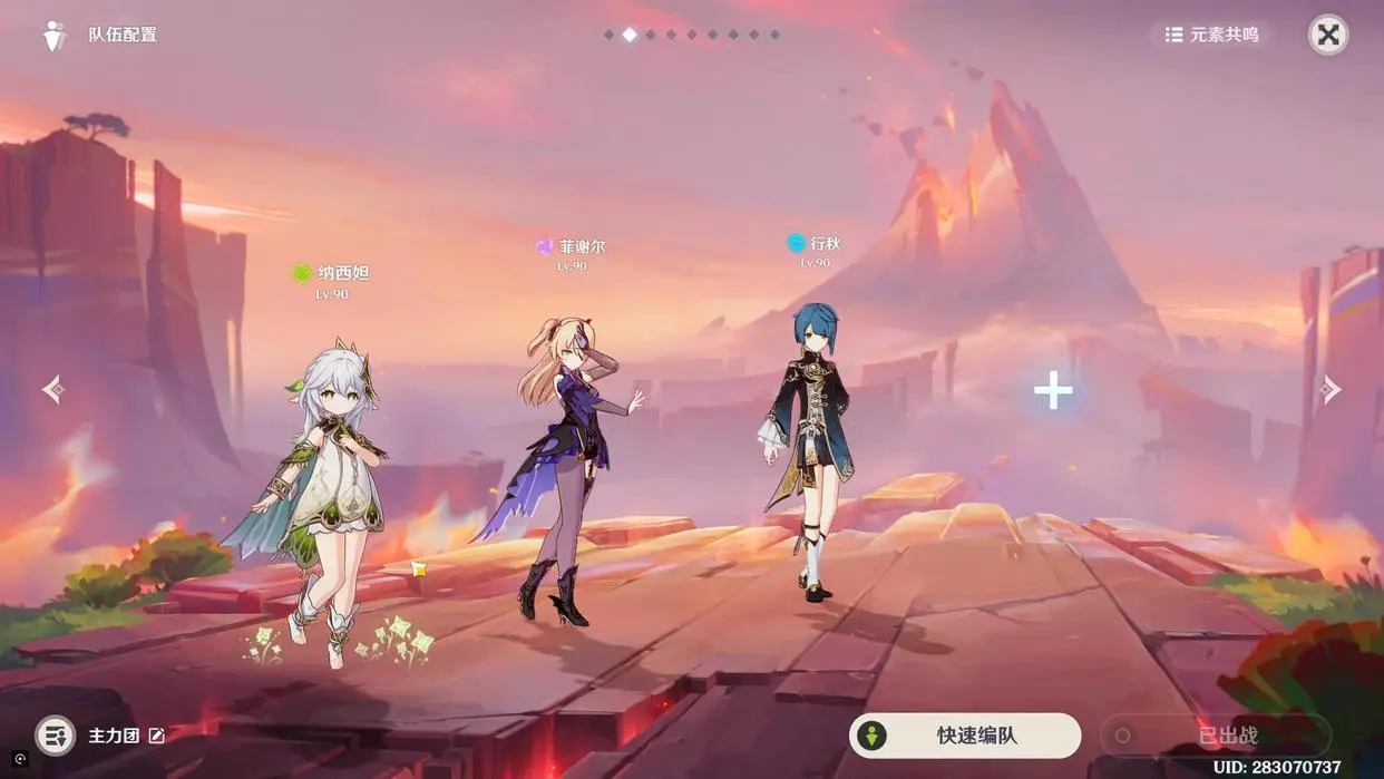 第三队:纳西妲、菲谢尔、行秋+希格雯,这个配队思路里面,希格雯依然是奶妈的存在,纳西妲主要输出,其实这个配队思路比较像草行久加强版,考虑到把久岐忍换成了菲谢尔,需要一个奶妈来补充,这时候,希格雯就出现了,再加上纳西妲是主C,操作手法就是利用纳西妲和行秋打出草种子,让菲谢尔切后台输出,最后希格雯切出来补点血。
