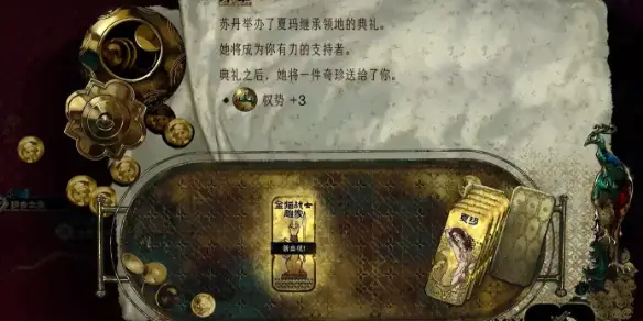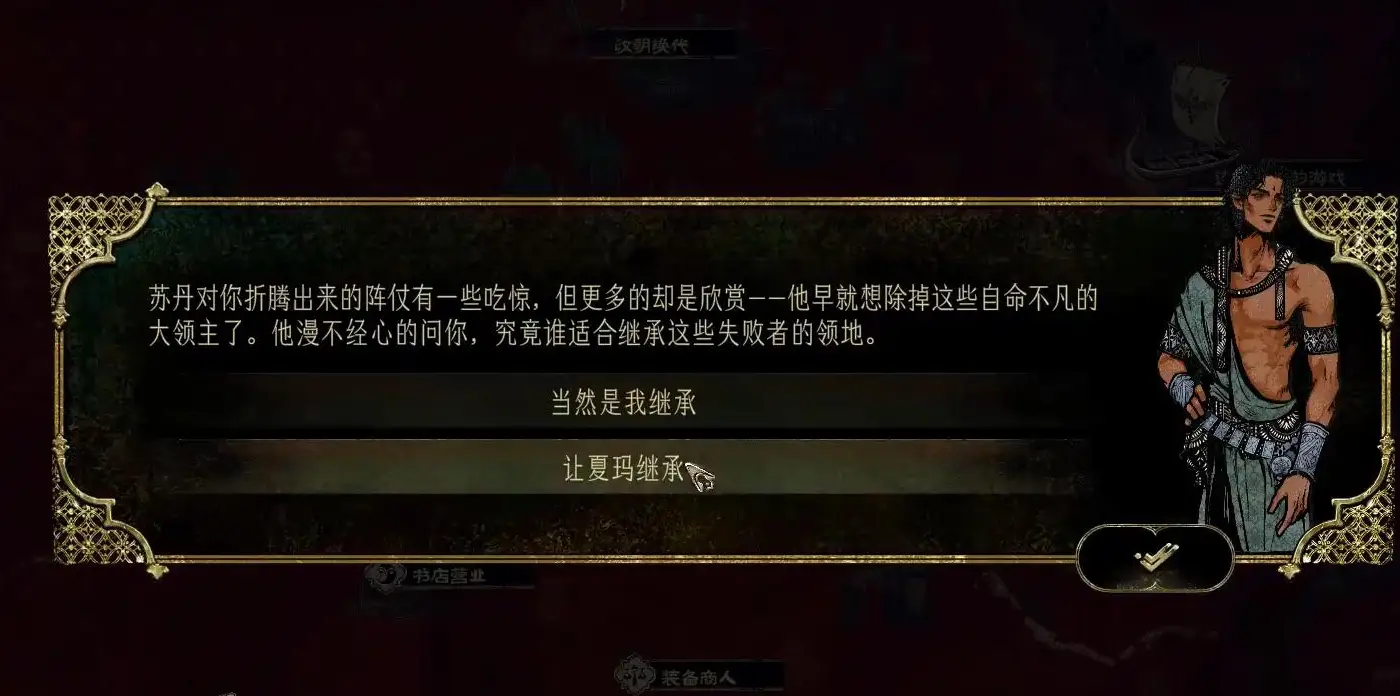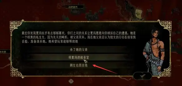 值得一提的是,若想让夏玛顺利入队,需要在【继承领地】事件中选择自己不上,并且将她纳为妾室,完成这两个事件后,夏玛便能成功入队,为后续的变金操作奠定基础。在《苏丹的游戏》中,每一次选择都至关重要,关乎着角色的命运以及玩家的游戏体验,希望各位玩家都能顺利让夏玛变金,在游戏中开启全新征程。