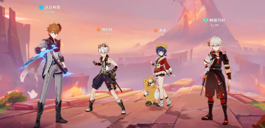 公子要发挥实力,就需要后台高频挂火还有打群怪,香菱和万叶很好的满足了这一点,班尼特提供了生存能力还有攻击力都是他们需要的,在万叶风套配合之下还能双扩散减抗,配合着相互打蒸发水伤和火伤伤害极高,万叶如果有2命提供前台精通就更加完美。