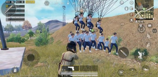 我们便可以看到这位玩家跟随飞机来到了航线尽头,就看到了一大堆站在这里一动不动的人机啦。值得一提的是,这里也并非是全部人机,一些在出生岛秒退或者飞机上离开的玩家,也会自动在这人机加工厂里集合在一起。