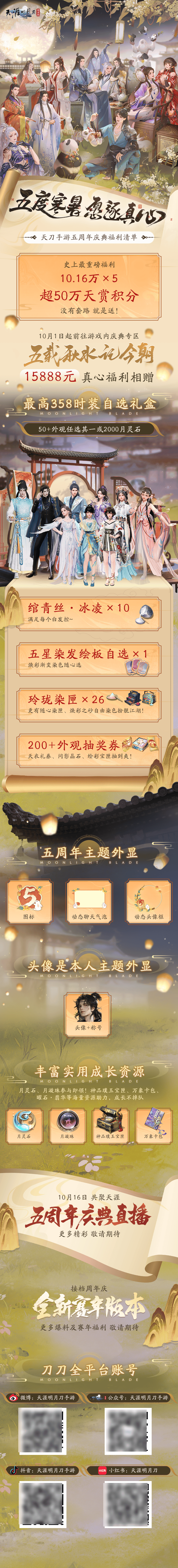 五周年庆典之际,恰逢中秋月圆、小长假到来,刀刀只想用最实在的心意、最重磅的福利,回馈每一位少侠! newhanawa.createAdBanner("pczwdadad1s");