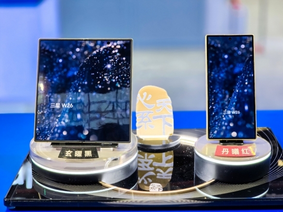 折叠手机目前是高端手机的细分市场之一。三星此次展出的心系天下W26手机是一款超轻薄折叠屏手机,其重量仅为215g,较前代产品减轻约40克。折叠状态下机身厚度仅8.9毫米,展开后更薄至4.2毫米。搭载升级版增强型装甲铝边框和超薄精工装甲铰链,在屏幕闭合时呈现更加纤薄灵巧的机身姿态,兼具强韧牢靠的防护性能。