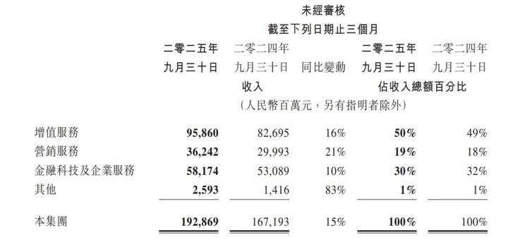 11 月 13 日,腾讯公布了 2025 Q3 的业绩:营收 1928.7 亿元,同比增长 15%;净利润 705.51 亿元,同比增长 18%;增值服务收入 959 亿元,同比增长 16%。