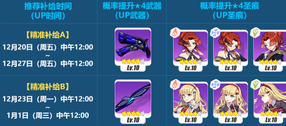 2)每十回精准补给内必出一件★4武器或★4圣痕。