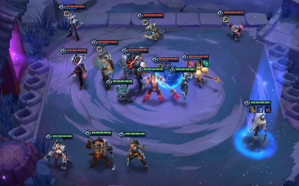 2、让烬站在聚光灯下,把三个近战英雄往前放。